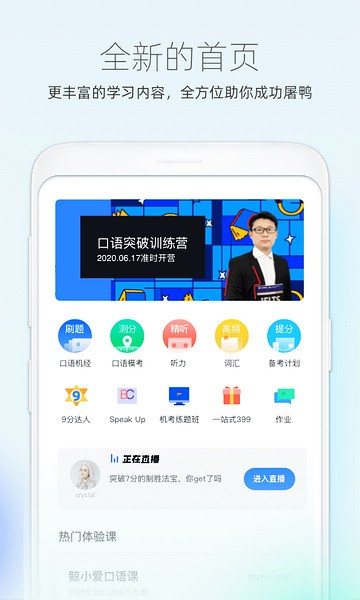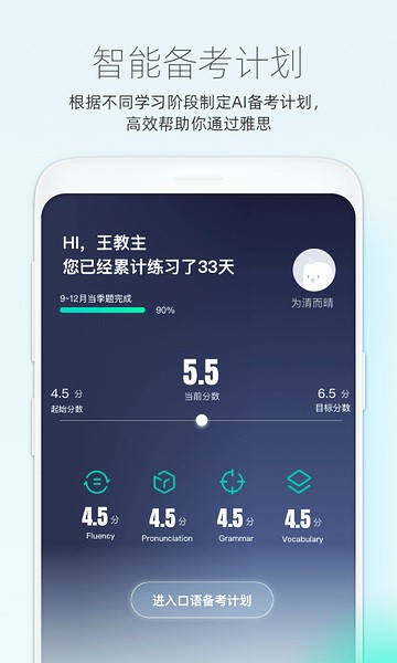 1、口语智能备考计划:通过智能自适应系统帮助烤鸭们制定个性化的备考计划,快速提升口语分数;
