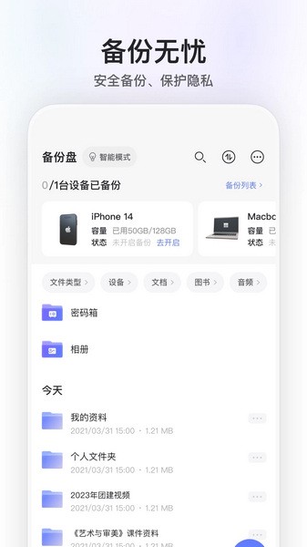 一键备份海量照片原图至云空间!释放手机空间,告别空间不足,三层加密,五级安全防护,珍贵美照再也不怕丢!