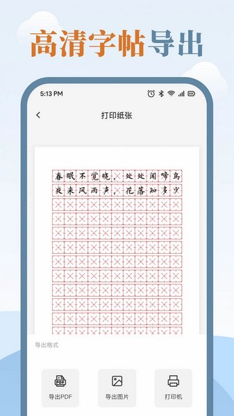 3、字帖:米格、宫格等字格、国风字帖定制、支持连接打印机直接打印、导出pdf、导出图片总有适合你的方式。