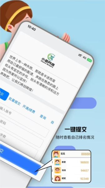 小鑫网络运动是一款非常实用的运动计步应用,它能帮助我随时记录和管理我的运动数据,了解自己的运动情况。软件功能很全面,比如运动记录、步数统计、数据监测等,还能设置目标和查看排名,挺激励人的。最棒的是它的自动记录功能,省去了手动输入的麻烦,而且界面设计得很简单,操作起来特别方便。