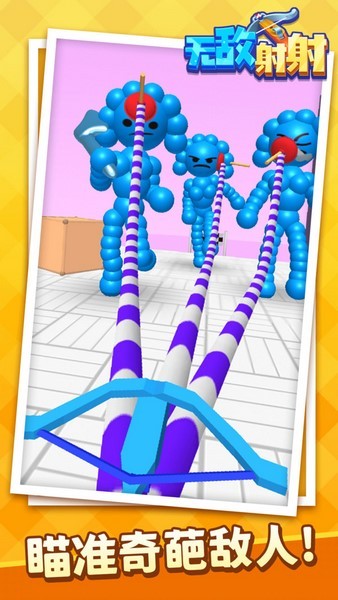 1、开始游戏后可以看到清晰的目标位置,敌人不会隐藏,只需调整角度与力度发射吸盘箭矢命中目标即可完成攻击。