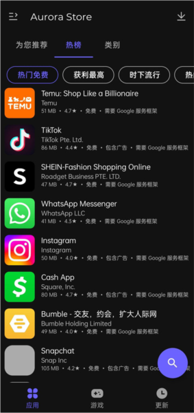 1、第三方谷歌应用市场: 作为第三方谷歌应用商店,Aurora Store应用商店提供了丰富且高质量的谷歌应用资源,满足用户的多样化需求。
