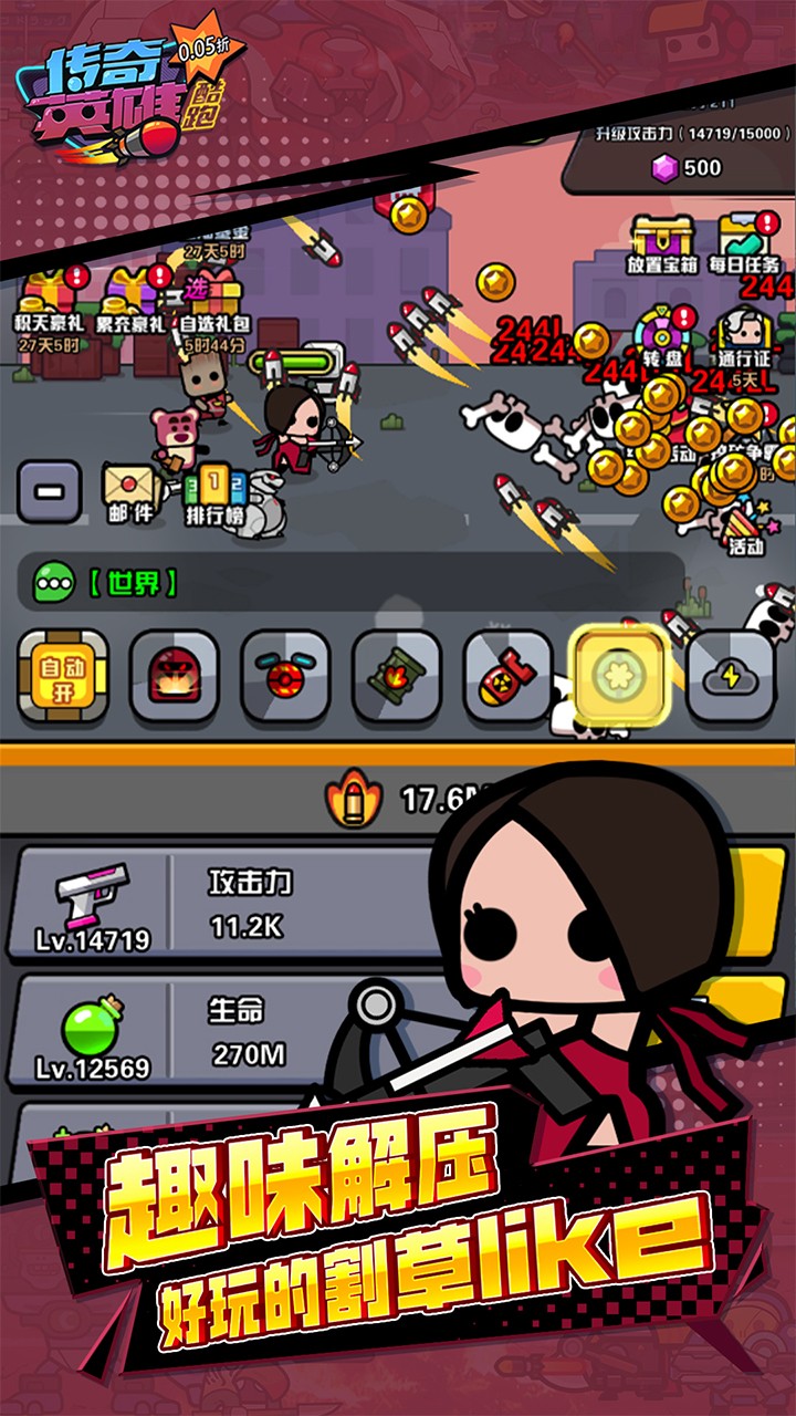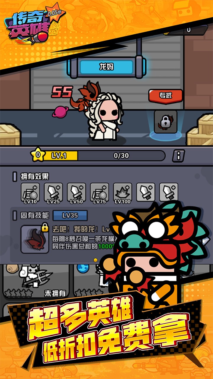 1、破底折扣:全场充值0.05折,英雄进化成本创新低,轻松闯关无压力