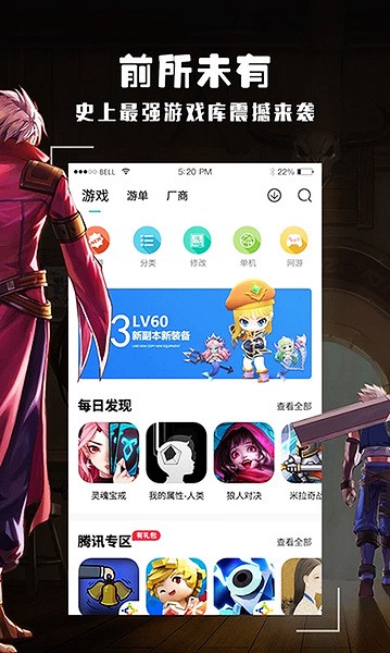 3、在发现界面中,有许多新游、分类游戏,以及游戏专题;