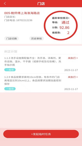 用户也可以对需要的审核报告进行查看,对门店可以在线审核,出具报告。