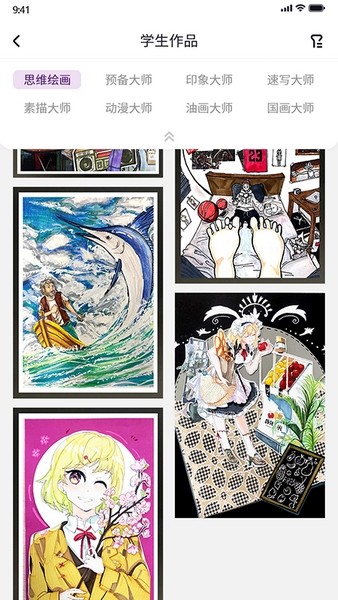 象玛艺术是一款美术教育app,这里有各种类型的美术课程可以学习,而且是按照年龄段来针对打造的,用户可以让自己的孩子在不同的年龄段去学习对应的课程。每门课程都有相应的介绍,让用户了解个大概,同时还有目录可以提前让你知道教学的大致流程。此外还能在这里浏览其他学生的学习成果,并且还可以按照分类来进行查看。