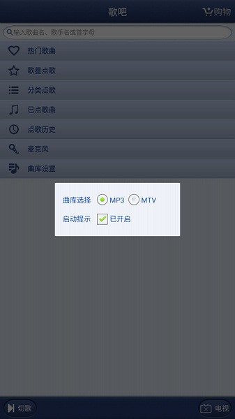 在歌吧手机端软件的设置页面中选择“启动”按钮,以启动“歌吧电视端”。此时,“歌吧电视端”将直接进入播放界面。