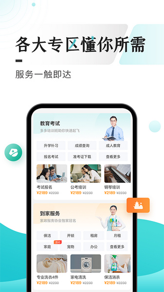 3、服务到家:提供家庭保洁、家电清洗、家电维修、搬家服务等您生活中需要的到家服务,围绕您的生活提供全方位服务。