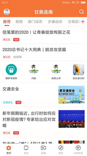 甘美连南app是一款非常实用的新闻资讯软件,主要为用户推送本地新闻和热点信息。这款app功能强大,涵盖了资讯、直播、活动、电视等多个模块,用户可以根据自己的兴趣订阅相关内容。每天都有大量的优质生活资讯更新,还有便民服务事项,能够为你的日常生活带来便利。