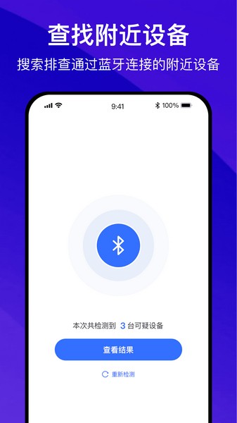 为用户提供了蓝牙连接的检测,对可疑蓝牙设备可以在线检测。