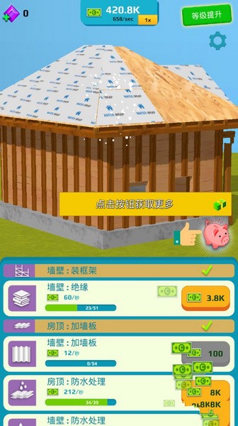 1、真实模仿了房屋建造的过程,各种工具能够协助你轻松建立房屋。