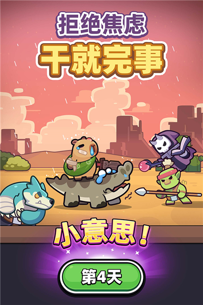 以可爱小动物和经典玩法吸引玩家后,用传统放置RPG模式作为衔接,让玩家从创意阶段过渡到数值追求层,是非常老练的做法。