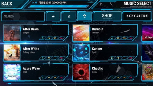 ①界面科技感满满,炫酷的开场动画,高端的选曲界面,实时校准系统都给这个游戏增色不少。
