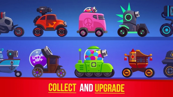 2、火箭战车努力成为有史以来最好的PK角色,并获得更多的黄金和钻石,这样你就可以购买新的武器和升级你的配件。