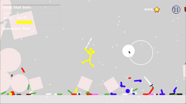 1、选择角色:游戏中有六种不同颜色的火柴人角色,每个角色具有不同的能力和打斗方式,玩家可以根据个人喜好选择合适的角色进行战斗。