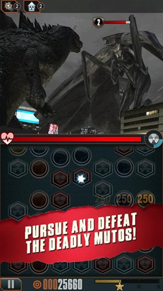 2、该游戏结合了哥斯拉的破坏活动和三消游戏。