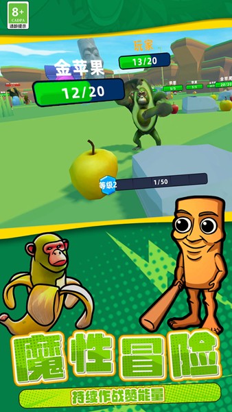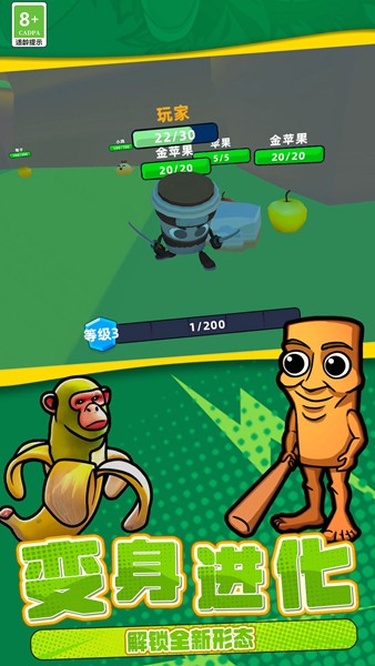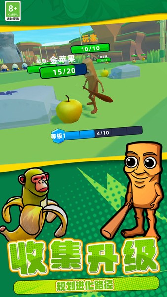 恐怖山海经世界是一款以外国山海经的怪物为原型打造的游戏,在这里有着各种奇特的组合怪物,木棍人、卡布奇诺杀手、香蕉猴、耐克鲨鱼等等奇特的怪兽,玩家们可以控制怪物们在场地中行动,收集金苹果获取经验升级你的角色,进化并获取强大的力量与其他怪物们战斗厮杀。