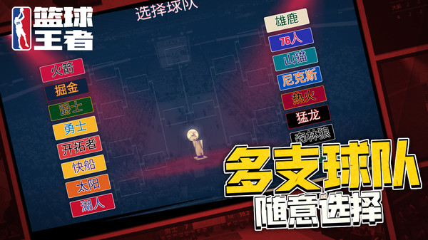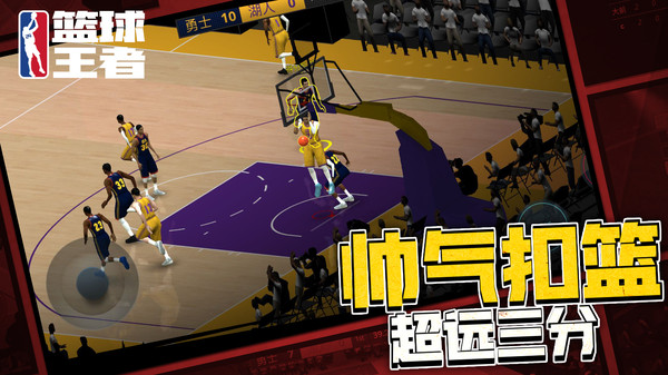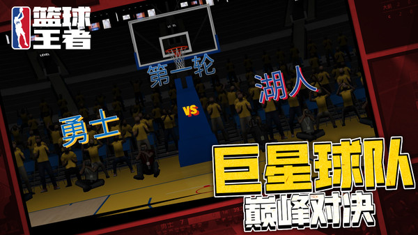 篮球王者是一款有着优质3D画面的篮球竞技游戏,玩家可以在众多球队当中任意选择,然后带领这支球队参加各种比赛,并和超多强劲的对手竞技。游戏的动作表现以及操作手感都是非常好的,对得起这个画质,玩家可以在比赛中控制球员展现出各种出色的技巧,过人、传球、扣篮还是超远距离的三分球都是可以实现的。