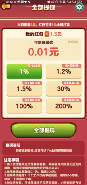 红包按照百分之一提现