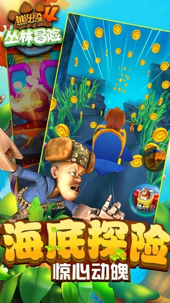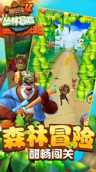 3.机关玩法:游戏首创特色机关玩法,各种新奇的关卡障碍,鱼群、巨石、齿轮、火球让你惊奇不已!各种各样的障碍物层出不穷,让你徜徉在熊出没的冒险世界!游戏画面精美细腻,高清场景将带给你前所未有的视觉体验。