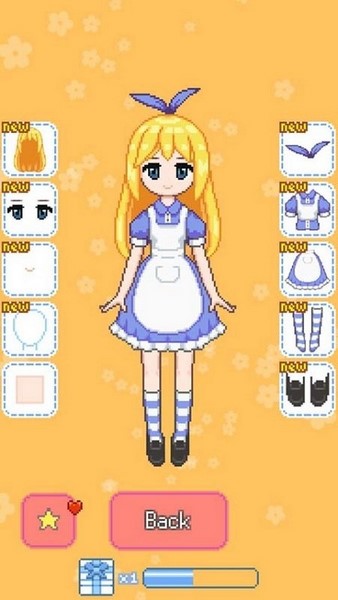 莫莫的盛装打扮是一款像素风格的换装类游戏,玩家可以在这里自由地为角色进行装扮上的搭配。游戏中有多达十个部位的元素可以选择搭配,其中五个是妆容部分,而另外五个则是服饰部分,能够形成无数种搭配。如果配出了自己特别喜欢的方案,那么我们也可以将该方案进行保存,这样以后无论是什么样子,都可以快速切换到该方案。