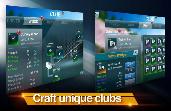 2、玩家需要赢得更多的比赛和关卡来获取珍贵的零件来升级球杆,随着球杆等级提升可以提供多方面的属性加成,不容忽视。