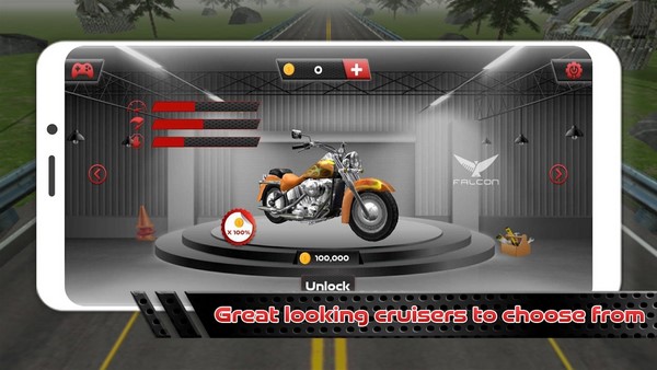 1、重力感应系统简化操作按键,倾斜设备就能控制摩托转向,无需进行任何按键操作就能完成压弯操作。