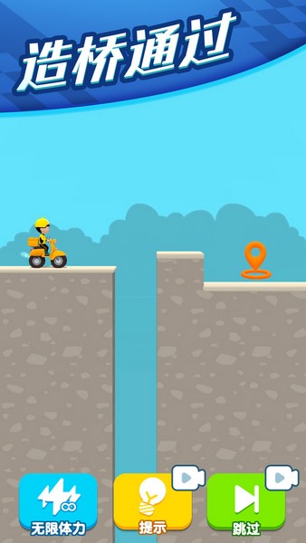 1、打开配送闯关游戏,进入关卡1,观察地形,长按屏幕绘制路径,连接起点与终点标记,助力骑手跨越障碍,抵达目标位置。