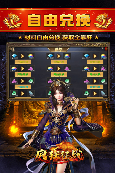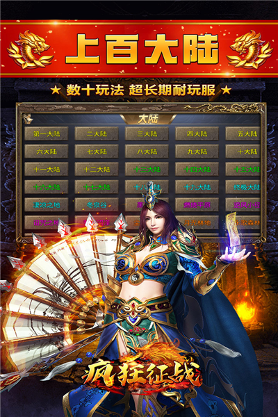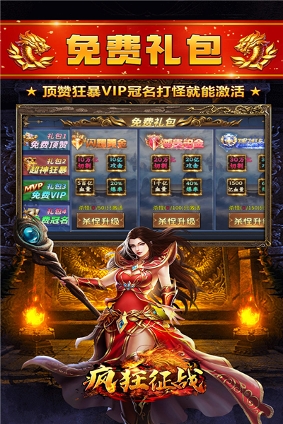 疯狂征战是一款非常刺激的单职业传奇手游,该游戏以经典IP传奇为蓝本,为玩家打造了全新的传奇玩法,有着许多经典的场景等各位探索,并且还有着三大经典职业,在搭配上传统的MMO玩法,让玩家可以尽情的进行体验。同时该游戏还为玩家设计了上百个大陆,玩家可以自由的选择探索,从零开始养成角色。