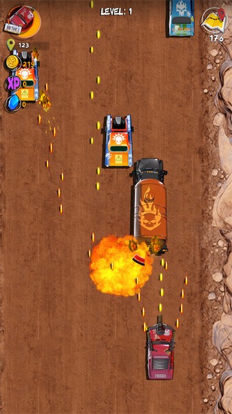 3、击败游戏中不同的敌方车辆,会掉落不同的游戏道具,例如金币、经验、医药箱、攻击道具等等,合理利用道具能够如虎添翼。