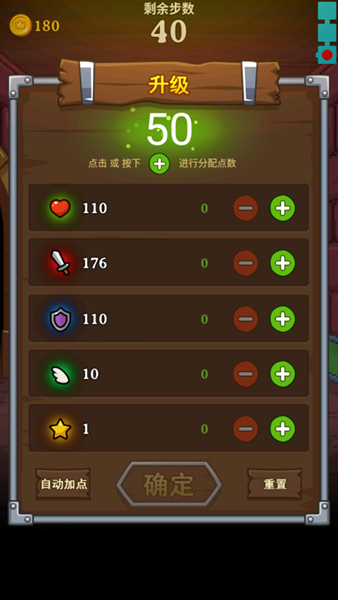 6、关于加点,首先把速度加到3000(没测boss的速度多少,但3000我们稳定先手),其余的点都丢到攻击上去。这游戏就是推荐遇怪一刀秒(+3步数不香吗)。