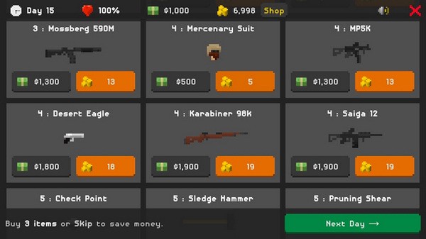 6、对于外面大量的僵尸,还可以在商店购买足够的物资能轻松获胜。