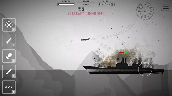 5、当被其他轰炸机击沉或是撞上地面时游戏结束,将根据游戏所获取的分数进行全球排名。