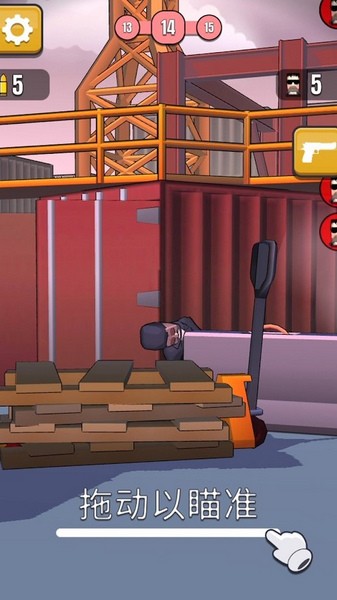 1、下载进入子弹特工游戏,拿起手枪瞄准敌人进行射击;