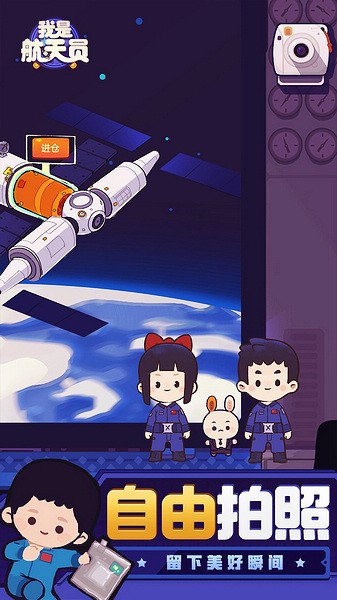 我是航天员手游官方版是一款航天模拟经营类游戏,游戏中玩家们将体验到作为一名航空员的生活,大家可以在空间站工作、生活,同时还能够了解航天基地运作与火箭建造,感受到我国航天科技系统的创新加持,参与传播中国航天精神。游戏中为玩家们打造了一个航天基地,大家可以亲身体验航天基地运作与火箭建造,体验宇航员在太空的生活,不管是吃饭、喝水、洗澡等都需要在里面完成,游戏内还内置了拍照功能,大家可以自由取景及拍照,和宇宙星空合影。