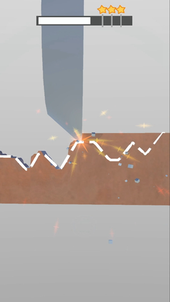 2、进入第二关面对紫色物件,保持上下拖动方式,让刀具沿物件轮廓精准切割,达成关卡要求。