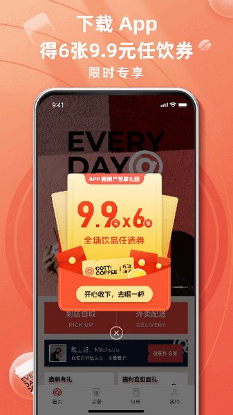库迪咖啡app(COTTI COFFEE)是一款专业的在线咖啡下单软件,提供丰富的咖啡选择和便捷的服务。无论是自取还是外卖,用户都能轻松找到心仪的咖啡,并享受优惠券带来的实惠。软件的一大亮点是每天都有特价产品,而且新注册用户还能获得超值礼包,吸引了不少人下载使用。