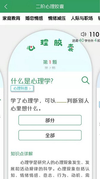 软件提供了心理学知识的学习内容,选择需要的知识点就可以在线学习。
