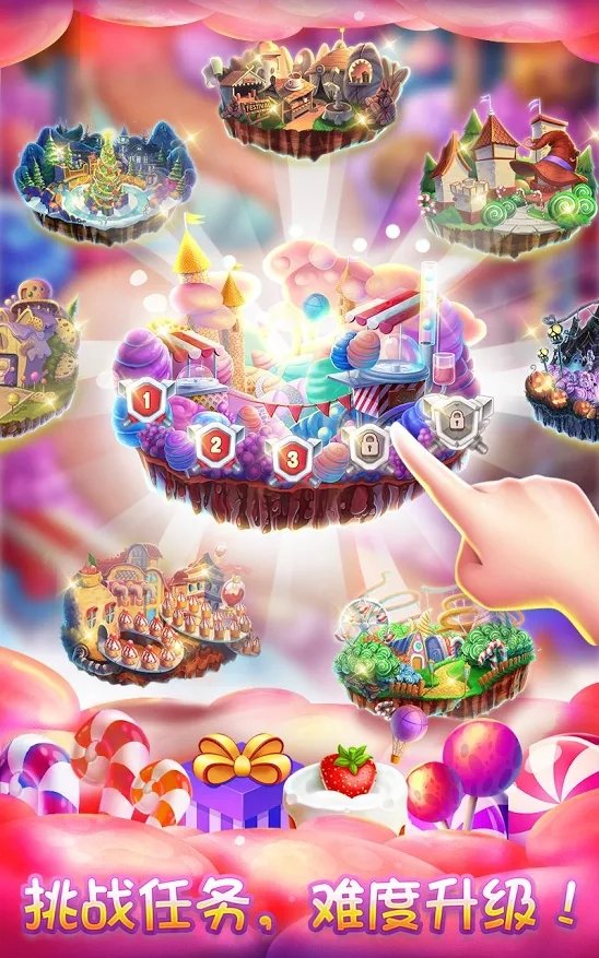 1、3D梦幻世界,视觉盛宴:立体糖果构建的奇妙世界,每一消除都伴随着绚丽的特效。