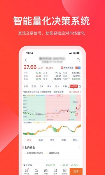具备华尔街专业量化交易操盘手常用的智能预警提醒,又结合中国股民习惯以更清晰直观又基于牛人和牛股的展现方式呈现;是国内唯一免费让股民获得交易机会的手机炒股App。