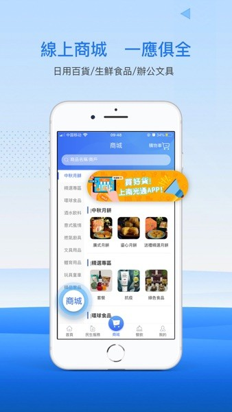 4、应用中有线上商城,含有各种各样的商品,方便用户快速购买日用品和各种美食;