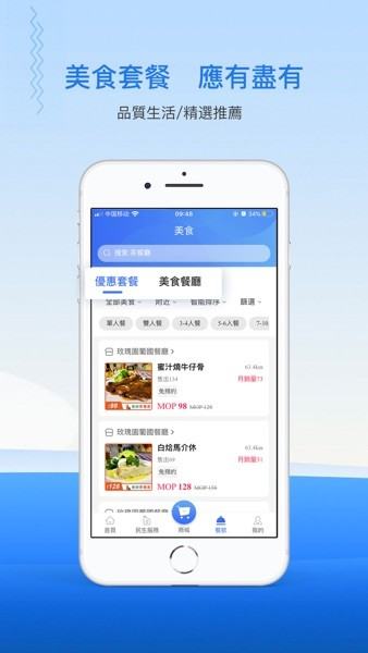 美食套餐应有尽有:餐饮美食、扫码点餐、扫码快捷支付、品质推荐、优惠精选等;