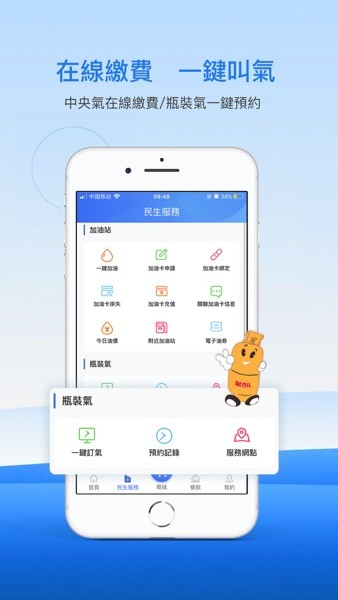油气服务线上缴费:一键加油、中央气线上服务、瓶装气预约、无感加油、加油卡线上充值等;