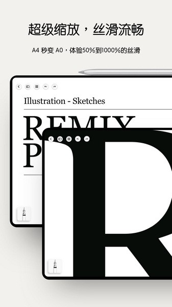 支持1000%页面缩放,将纸张面积瞬间扩增十倍,令您在一页纸上可以记录更多内容的同时,书写依旧丝滑流畅。PDF与图片同样支持1000%缩放,任何一个微小的细节都不会错过。