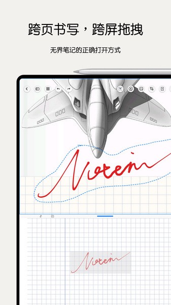 跨页书写,作为一种无界笔记的实现方式,它可以让您的笔迹自由流淌在连续的页面上,创意不碰壁。灵感不间断。附带的好处,您不必再担心传统无界笔记带来的数据无序和卡顿问题。
