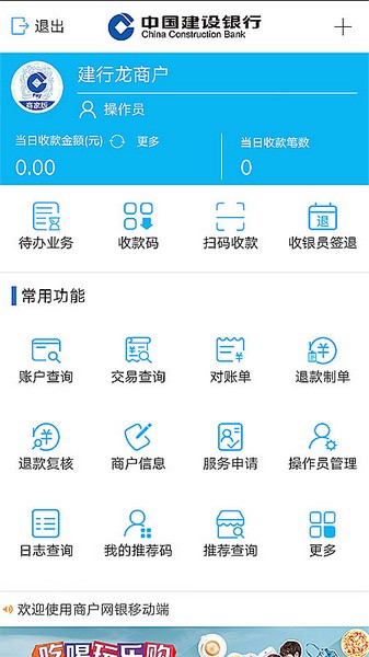 龙支付商家版APP是一款主打在线手机支付的软件,隶属于中国建设银行旗下,专为商家用户打造,界面清爽大气,功能丰富强大,搭配二维码、扫码收款等多项技术,让收款更便捷!并支持账户查询、交易查询、对账单等功能,让账户资金更安全,且能随时记账,避免糊涂账、漏账等情况发生,让商户经营更加智能化!