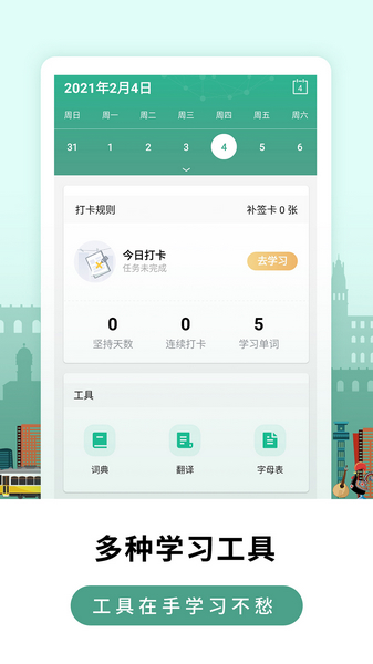莱特葡萄牙语背单词是一款专为学葡语设计的应用,能让你轻松高效地学习葡萄牙语。它不仅有每天的学习打卡功能,还能记录你的学习天数和进度,特别方便你坚持下去。应用里有很多工具,比如词典、翻译和字母表,还有海量的文学作品、音频和新闻,感觉像进入了一个葡语小世界。
