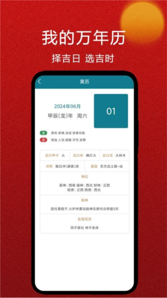 我的万年历是一款功能全面且界面简洁的日历应用。它由济南翼快软件科技有限公司开发,为用户提供了一个高效便捷的日历信息查询平台。无论您是需要查阅农历、黄历还是节日假期信息,这款应用都能让您轻松获得所需。