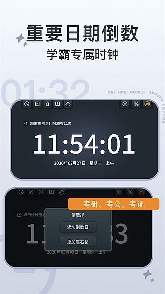 考研、考公、考证等重要日倒计时。方便做好时间规划,有效自律学习,远离学习拖延症。