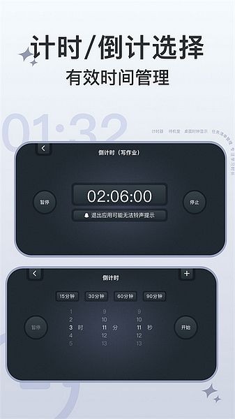 2、计时器/倒计时功能一键切换,满足您不同的时间管理需求。